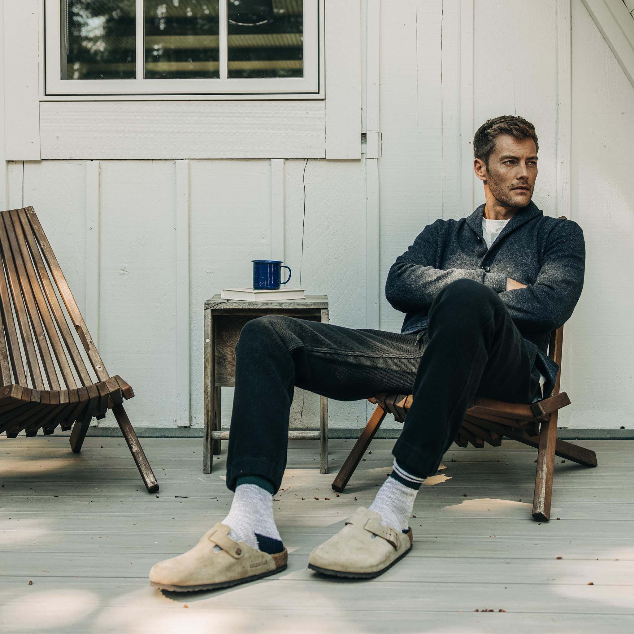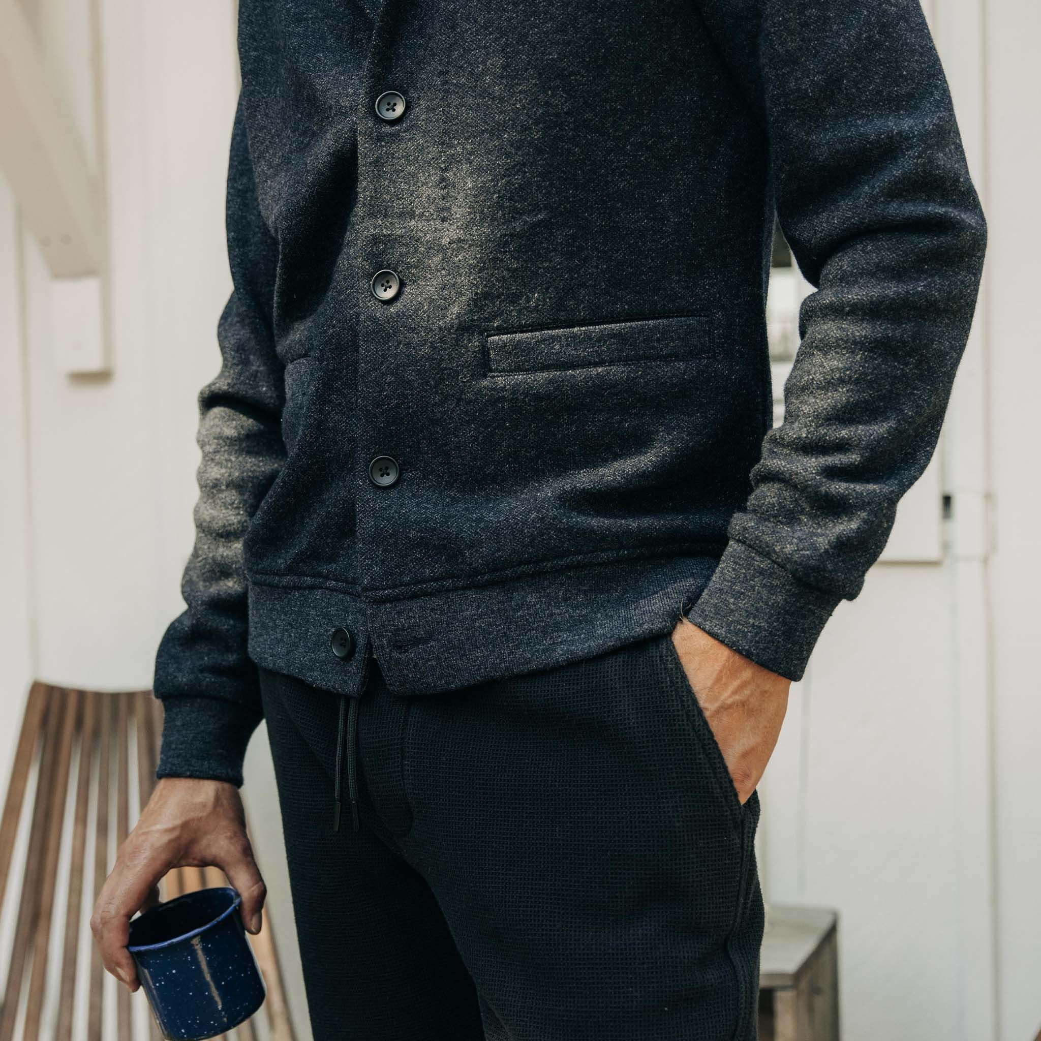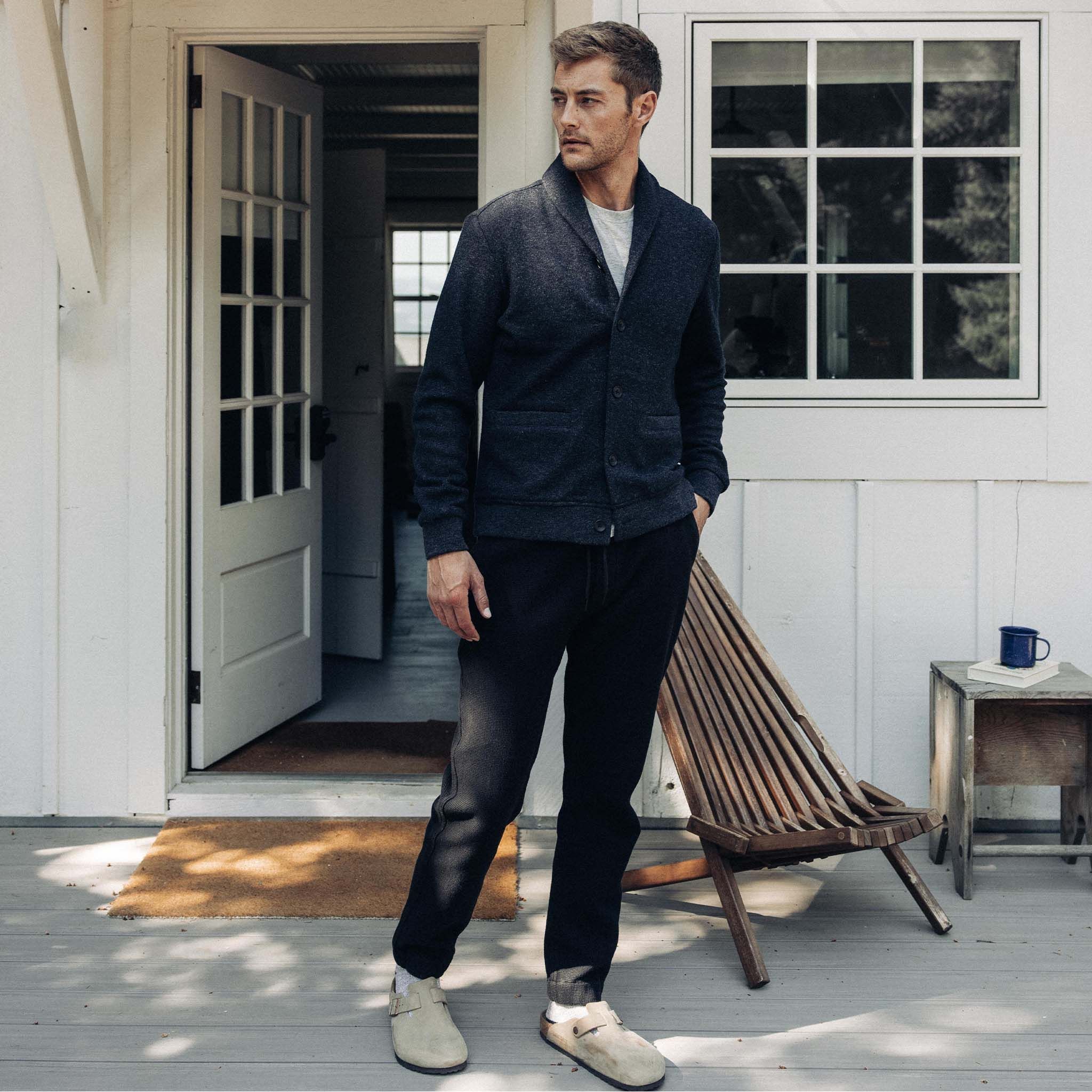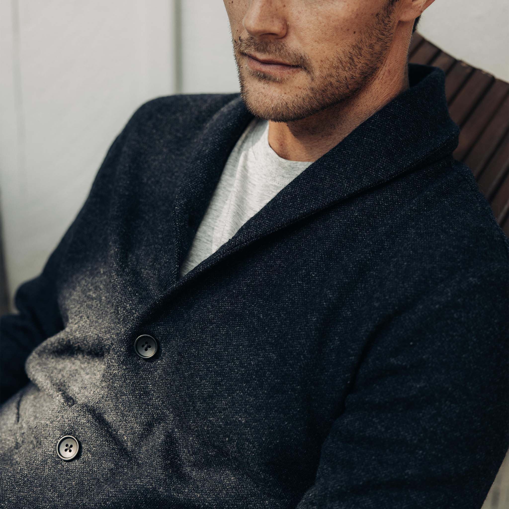 The Weekend Cardigan in Navy Herringbone Wool from Wvrer